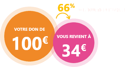 Ainsi par exemple, un don de 200€ vous revient en réalité à 68€ après réduction fiscale (réduction de 66% dans la limite de 20% du revenu imposable).
